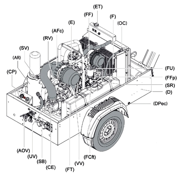- Мобильность и перевозка по дорогам общего пользования. Мобильный передвижной воздушный компрессор ARIACOM SAX 57K имеет ПТС для постановки на учет в ГИБДД!