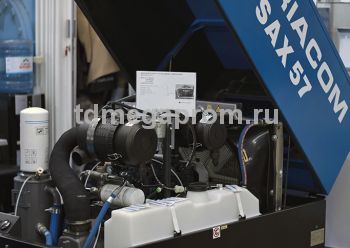 Компрессор воздушный ARIACOM SAX 57К имеет одноступенчатый винтовой маслозаполненный компрессорный элемент Atlas Copcо, приводимый в движение через редуктор от дизельного поршневого двигателя марки Kubota.
