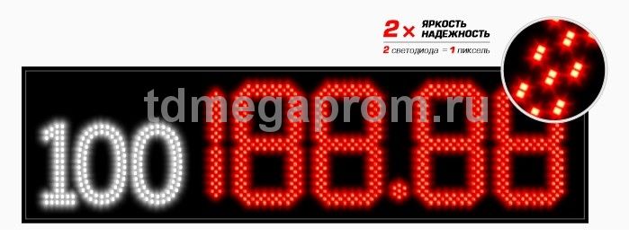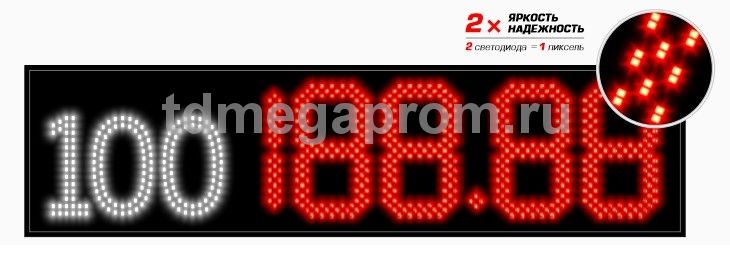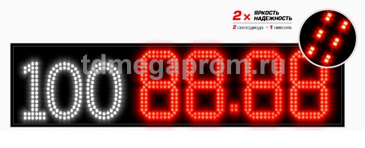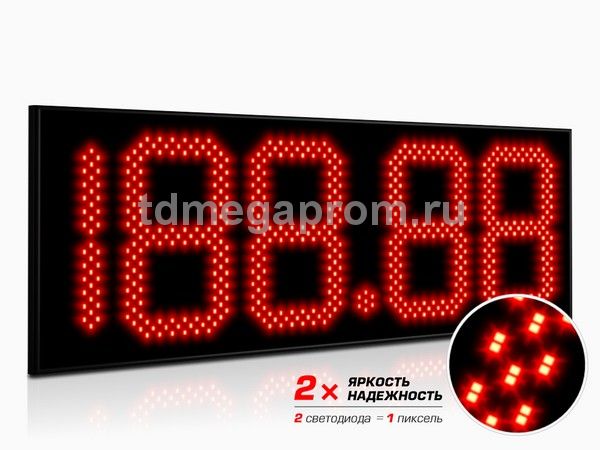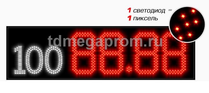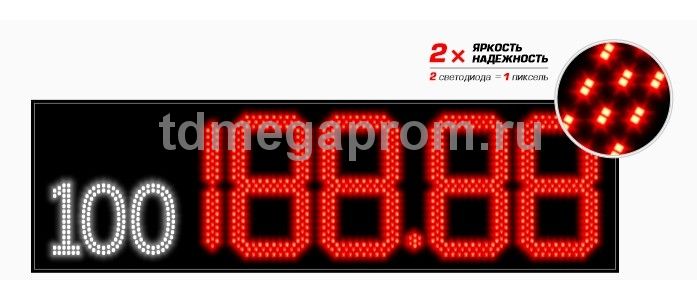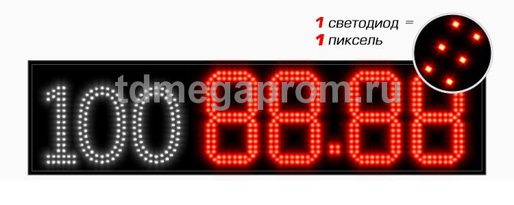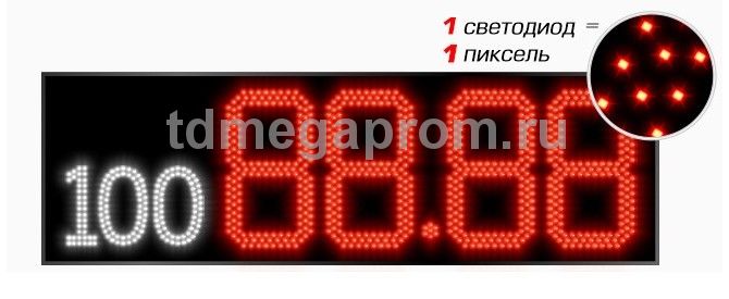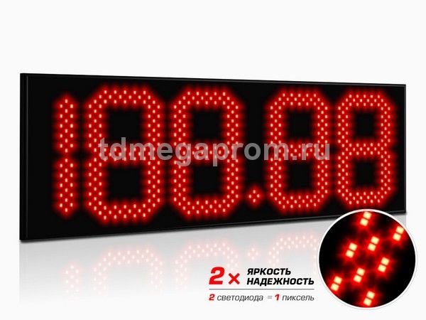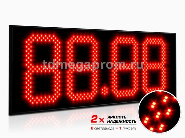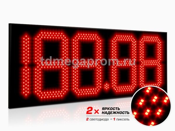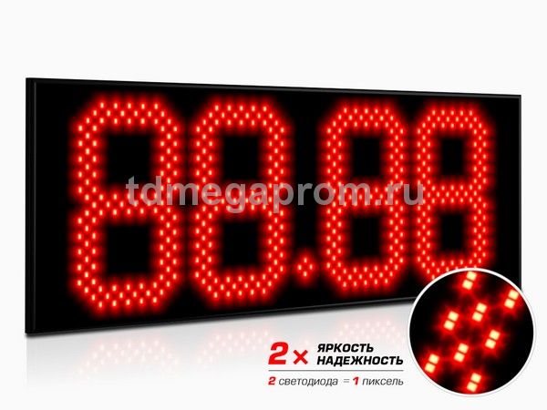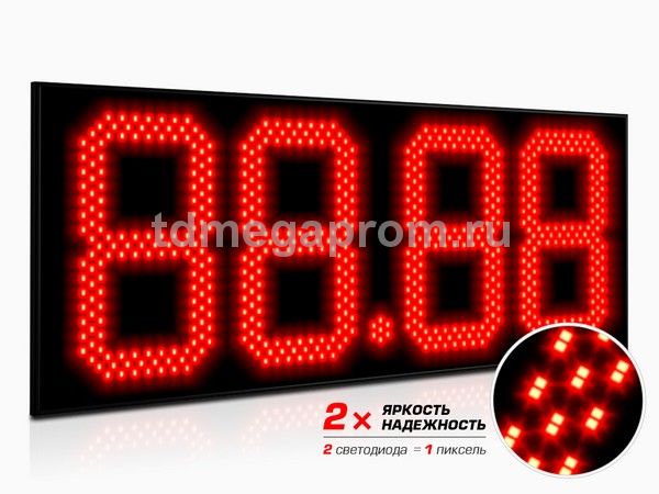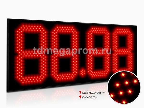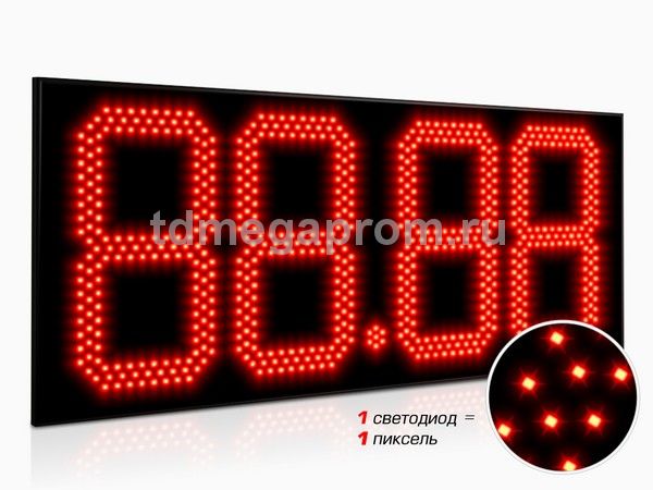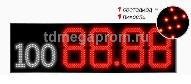 4 Кд повышенная (в каждом пикселе 2 независимых светодиода) Марка топлива (статичная) - белый цвет Цена - красный цвет свечения (другие цвета - под заказ).