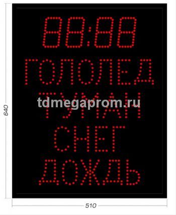 Электронное светодиодное табло, информирующее людей об актуальных погодных условиях. Оно отображает информацию о погодных (дорожных) условиях в текстовом формате. Индикаторы погодных условий включаются и отключаются вручную с помощью пульта ДУ.