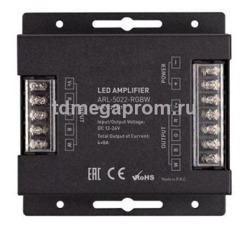 Четырехканальный RGB усилитель, предназначенный для использования совместно с RGBW контроллерами, светодиодными лентами и другими источниками света, использующими технологию управления ШИМ.